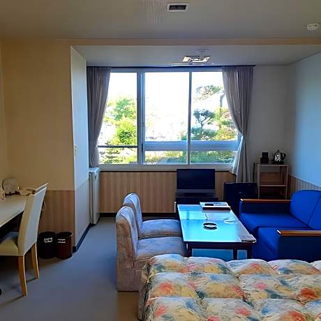 Features tatami-mat (woven straw) flooring, futon bedding and views of Toya Lake. A flat-screen TV, refrigerator and safe are included. Each room has a private toilet, while bathroom facilities are shared.