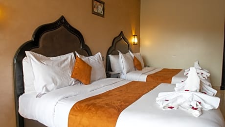 Located in the heart of downtown Marrakech, the Imperial Plaza Hotel & Spa offers immediate access to the city's main tourist, commercial and cultural attractions. Just a few steps from Avenue Mohammed V, in the heart of Marrakech's most dynamic area, the hotel is less than 10 minutes' drive from Jemaa El Fna Square. Marrakech-Menara airport and the Royal Golf Club are also less than 15 minutes away, making the Imperial Plaza an ideal base for exploring Marrakech with ease. Facilities & Rooms Our spacious, air-conditioned rooms have been designed to combine modern comfort with practicality. They are all equipped with a Smart TV with satellite channels, high-speed Wi-Fi connection, private bathroom, and are served by an elevator. The hotel also features a comprehensive spa and wellness center, offering a wide range of treatments, rituals and relaxation options. Swimming pool & Rooftop Located on the top floor of the Imperial Plaza, the Sun-Set Rooftop features a swimming pool with a breathtaking view over the rooftops of Marrakech. This exclusive space allows guests to enjoy a swim while savoring a cocktail or snack, in a setting that combines refinement and relaxation. Right next door, the rooftop gourmet restaurant offers fine, inventive cuisine, including a menu of signature mixologies devised by our experts. Whether for an elegant lunch, a poolside aperitif or dinner under the stars, the experience stands out for its unique atmosphere and exceptional service. Breakfast, Lunch & Dinner A varied buffet breakfast is served every morning. For lunch and dinner, the hotel offers a refined gourmet buffet experience in a restored traditional riad-style restaurant, elegantly blending Moroccan architecture with local and international flavors. Staff Our professional, multilingual team is committed to providing impeccable service throughout your stay. From arrival to departure, our guests enjoy an attentive welcome and sincere hospitality.