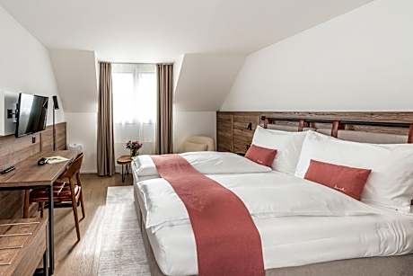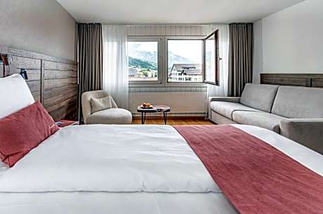 This elegant hotel is located only a 15-minute drive from Lucerne and a 2-minute walk from the train station. It offers modern wellness facilities, free parking and a large terrace. Chargeable charging station for electric cars is available. Wellness facilities of the Tailormade Hotel KRONE Sarnen include a Caldarium, a sauna and a steam bath. The rest area offers panoramic views of the Landen mountain. All rooms are equipped with high-quality furniture, flat-screen TV and wooden floors. Modern cuisine made from market-fresh ingredients and selected Swiss wines can be enjoyed in the restaurant of the Tailormade Hotel KRONE Sarnen. The lounge bar is a stylish place to sip an aperitif, a digestif or an aromatic coffee.