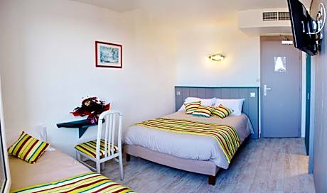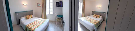 Hotel La Chaudrée is located in La Bree-les-Bains in the North of l'île d'Oléron, 328 feet from the beach. It offers an outdoor heated pool with a fully furnished terrace. Each room has views over the village or the pool. The rooms are in a simple style décor with wooden floors and are equipped with a flat-screen TV and a private bathroom. Continental breakfast is served daily. Guests can enjoy a drink at the hotel’s bar. Hotel La Chaudrée features a bicycle and surf storage room. Activities in the area include cycling, hiking and fishing. Free parking is provided. La Chaudrée is 984 feet from the La Brée-les-Bains market and 3.1 mi from the Chassiron Lighthouse. Each room has views over the village or the pool and are accessible by stairs. The hotel has one room with disability access loctaed on the groundfloor and available upon prior request. The rooms are in a simple style décor with wooden floors and are equipped with a flat-screen TV and a private bathroom.