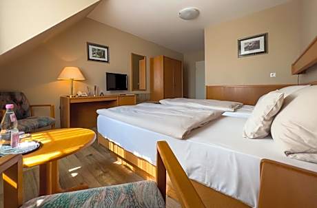 Opposite Wörlitz Palace and a 2-minute walk from Worlitzer See Lake, this hotel offers spa facilities, country-style cuisine and a large, shady beer garden. It is 3.7 mi from Oranienbaum town center. Spacious rooms decorated in soft pastel colors are offered at the Hotel Landhaus Wörlitzer Hof. All rooms include satellite TV, and a private bathroom with hairdryer, slippers and toiletries. Seasonal specialties are served in the bright restaurant with large windows and in the summer hall with fireplace. There is also a covered outdoor café. Guests can relax in the Landhaus’s sauna or enjoy a luxurious bath treatment. Massages can also be booked. The Wörlitzer Hof stands directly on the marketplace, and offers free parking. Guests can go for romantic gondola trips from the lake’s pier, just a 5-minute walk away. The A9 motorway is 5.6 mi away, allowing easy access to Leipzig and Berlin.
