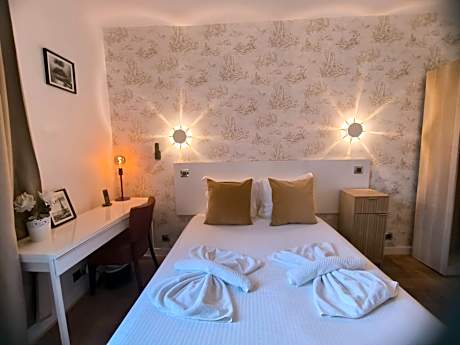 Hotel Le Twelve is located in the 12th district in the east of Paris. It is a 10-minute walk from Place de la Nation, Place de la Bastille and Bois de Vincennes and offers modern rooms with Wi-Fi access. Rooms at Hotel Le Twelve are decorated in neutral tones and patterned fabrics. Each features an LCD TV, a private bathroom and views of the street or on a furnished terrace where guests can have a drink. A continental breakfast is served daily in the breakfast room or on the terrace when the weather is fine. Private parking is 2953 feet from the hotel and restaurants can be found within walking distance. Porte de Vincennes Metro Station is 394 feet from the hotel and leads directly to sights such as Le Louver, Le Marais and La Défense business district. Nation RER Station and Metro Station are also a 10-minute walk away and offers direct access to Disneyland Paris and the Eiffel Tower, via the line 6.