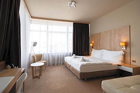 The Hotel Liberec is located in the center of Liberec and offers you comfortably furnished rooms, a fine restaurant open from 18:00 to 21:00, its own parking, a sauna and a sunny terrace. Internet access is available free of charge in the guest rooms and public areas. Select from a wide range of traditional Czech and international cuisine and relax while enjoying your favorite drink in the lobby bar, which is open from 17:00 to 22:00. The friendly front desk staff is available 24 hours a day and is happy to provide you with any information you may need to spend a rewarding stay at the Liberec hotel.