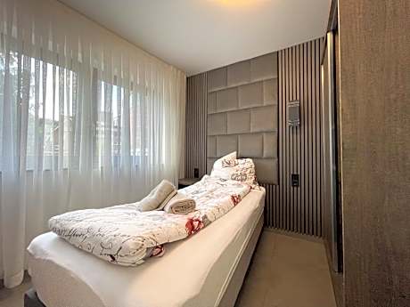 The triple room has a private bathroom, air conditioning, soundproof walls, as well as a seating area with a flat-screen TV. This triple room features a tea and coffee maker, a wardrobe, TV, as well as wine/champagne for guests. The unit has 2 beds.