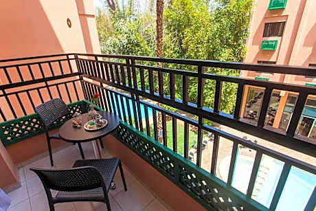 Hôtel Meriem is located in Marrakech City Center, a 4-minute drive from Marrakech Train Station. It offers a sauna, fitness center and 2 outdoor pools with a fully furnished terrace. Each air-conditioned room has a contemporary décor, equipped with satellite channels on a flat-screen TV and a private bathroom. Free Wi-Fi is available in all areas. Hôtel Meriem’s restaurant offers a buffet serving international cuisine and breakfast in the luxurious dining room or out on the terrace. It is 3.7 mi from Marrakech Airport. Guests can explore the city with sites, such as Oliveraie Bab Jdid and Jardins Menara. We inform our valued guests that a building construction site is currently underway right next to our hotel. License Number(s): 40000HT0759