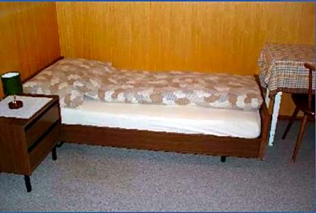 This room has a small seating area and a bathroom with a bath tub and shower hose. It is not facing the street and offers quiet surroundings.