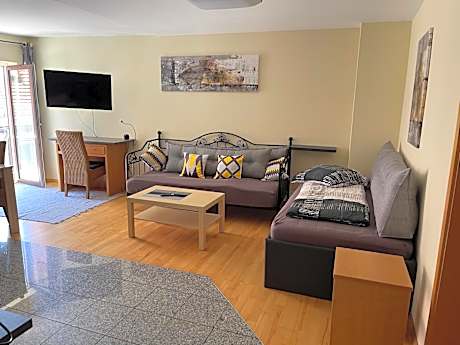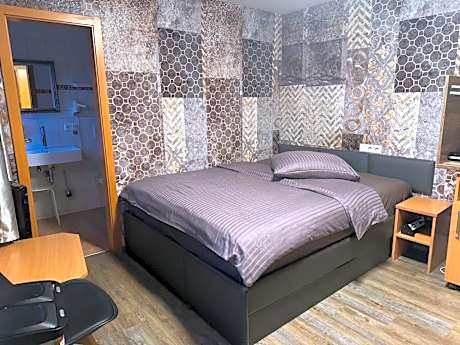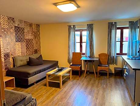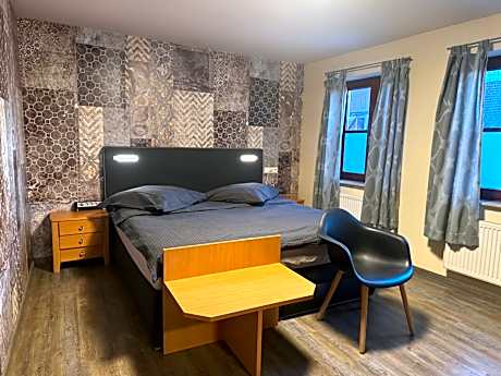 This cozy town hotel is located directly in the Old Town of Markgröningen, in Baden-Württemburg. The Hotel Mythos offers comfortable rooms featuring a TV, mini-bar, a coffee machine with free coffee and free unlimited broadband internet access. Most rooms have a kitchenette inside the room or a shared kitchen next door. The Hotel Mythos is a convenient base for exploring the medieval half-timbered buildings in Markgröningen. It is also popular with guests attending the annual Schäferlauf (shepherds’ run) in the town. The hotel enjoys good road connections and is easily accessible from the A81 motorway. From here you can quickly and easily get to the cities of Ludwigsburg and Stuttgart, as well as Stuttgart's airport and exhibition center. Guests at the Hotel Mythos can park for free at the hotel.