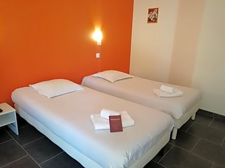 Hôtel Némo Aéroport de Pau - KB HOTEL GROUP is 2953 feet from Pau-Pyrénées international airport, just a 10-minute walk away, and is 5, 10 and 15 minutes respectively by car from the A64 freeway, the Palais des Sports/Zénith, and downtown Pau. All rooms feature flat-screen TVs, desks, double beds, private bathrooms and free high-speed Wi-Fi. Our parking is free and monitored by cameras 24 hours a day. A Continental breakfast buffet is served from 7am to 9:30am on weekdays, and from 7:30am to 10am on weekends. It can also be served in your room, on request. Breakfast is included in our room rates. The Hotel is served by the Allias bus stop, just opposite the establishment, on the local Line 17, which serves Pau in just twenty minutes. Our hotel offers you a moment of calm and serenity, while being close to the airport and downtown Pau, so you can enjoy total relaxation, surrounded by hotel professionals.