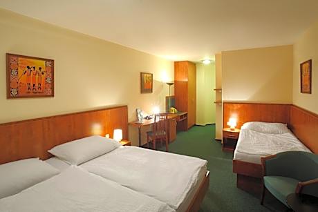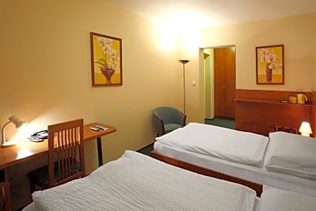 Hotel Palace is located in the district of Roudna, a 5-minute walk from Pilsen's historical center. It offers spacious rooms with free WiFi access and 2-yard wide beds. Reception services are provided by the sister hotel Roudna, which is about 98 feet away. The Roudna Hotel’s reception is open from 7:00 - 22:00 and is available by phone overnight. Free public parking is possible on the street during night hours. Daytime parking as well as parking in the hotel's fenced parking lot 98 feet from the hotel, are at an additional cost. Guests receive a discount to dine in the sister hotel Roudna's Steak Restaurant which serves Czech specialties, steaks from Argentine beef and 4 kinds of draft beer. There is also a variety of international dishes. Guests can enjoy wide selection of local and Argentinian wine.