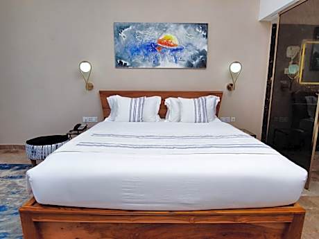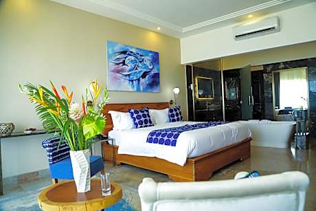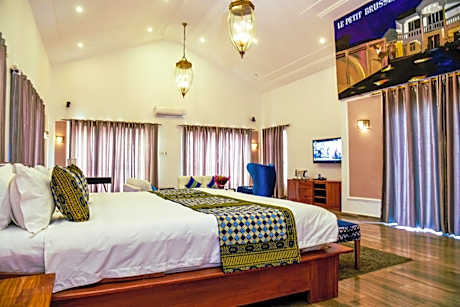 Hotel Petit Brussel is a guest house facing the sea located at just 1 minute walk from the beach. The property is set in Lome BAGUIDA in a chic and secure neighborhood. Couples appreciate particularly the location of this property. Petit Brussel offers an outdoor pool and a large garden with waterfall. An open bar offers drinks and cocktails served outdoors in the garden and by the pool. The entire property is covered by high speed connectivity. Rooms have a smart TV and a coffee machine, some rooms do even have a balcony. The private bathroom has a shower. A full continental or English / Irish breakfast is served with cold drinks and natural products. The restaurant serves vegetarian dishes (on request) and international cuisine. The city center is at 12-minute drive away and the airport is 6.2 mi away.