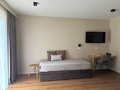 Featuring a balcony with views of the Dolomites, this room offers a satellite flat-screen TV and a private bathroom. It also comes with carpeted floors and wooden furnishings.
