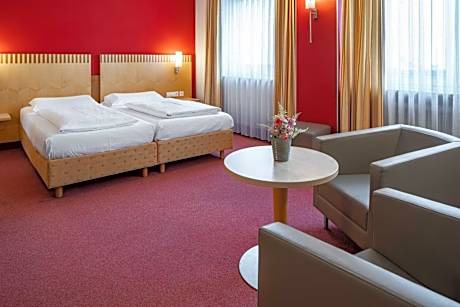 Featuring free toiletries, this quadruple room includes a private bathroom with a bath and a hairdryer. The quadruple room has carpeted floors, a seating area with a flat-screen TV with satellite channels, a wardrobe, a safe deposit box, as well as heating. The unit has 3 beds.