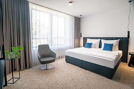 Offering free toiletries and bathrobes, this double room includes a private bathroom with a walk-in shower, a hairdryer and slippers. This double room is air-conditioned and has a seating area with a flat-screen TV, a wardrobe, a safe deposit box, a carpeted floor, as well as heating. The unit has 1 bed.