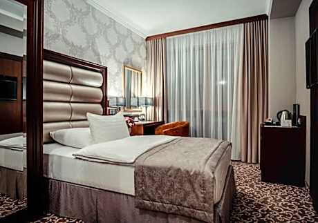 This air-conditioned room features satellite TV and a mini-bar. The private bathroom is provided with bathrobes and a hairdryer. Coffee and tea service, free Wi-fi, parking.
