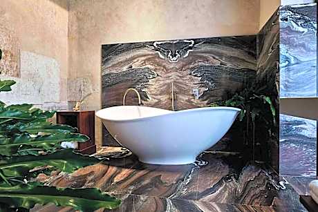 A stylish room done in a style inspired by the Art Deco period. It offers free internet and mineral water.
