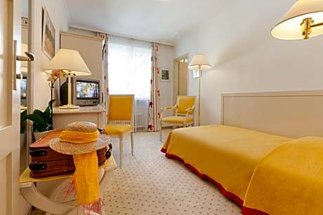 Once a patrician residence built in the 18th century, the Hotel Tamaro can be found right on the banks of Lake Maggiore in the center of Ascona. Fine Swiss and Mediterranean cuisine is served under ancient vaults or in the charming covered courtyard. You can sip a drink in the quiet garden or on the terrace while enjoying the panoramic views of the lake. All rooms have a private bathroom, a mini-bar and a TV. Free WiFi is available in each unit. Within a 5-minute walk you can reach the Hotel Tamaro's dependance featuring a sunbathing lawn and an outdoor pool. The next beach can be reached on foot within 10 minutes. Limited parking is available in the garage on site. There is also a private parking area available for a surcharge a 5-minute walk away.