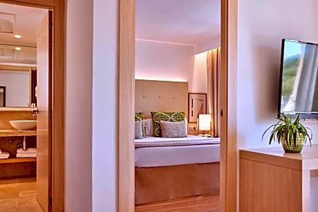 ONE BEDROOM SUITE PRIVATE POOL 2 ADULTS is 947 square feet and includes a double bed 131-150 width plus satellite tv , hairdryer, tea and coffee making facilities , safe, and bathrobes and is Wheelchair-accessible.