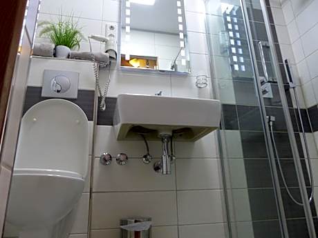 The quadruple room offers a private entrance, soundproof walls, as well as a private bathroom featuring a walk-in shower and a hairdryer. The quadruple room provides a seating area, a wardrobe, a carpeted floor, heating, as well as a flat-screen TV with satellite channels. The unit offers 3 beds.