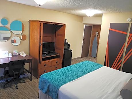 Located 3 miles from Albuquerque International Airport, this Albuquerque hotel offers a indoor pool. Free WiFi and a daily grab and go breakfast is offered. A microwave, small refrigerator and a seating area with cable TV and work desk are provided in each room at Howard Johnson by Wyndham Albuquerque Midtown. A coffee machine and hairdryer are also included. Guests can relax in the indoor hot tub or pool. On-site recreational activities include a fitness center. The University of New Mexico is less than one mile from Howard Johnson by Wyndham Albuquerque Midtown. Balloon Fiesta Park is 8 miles away.