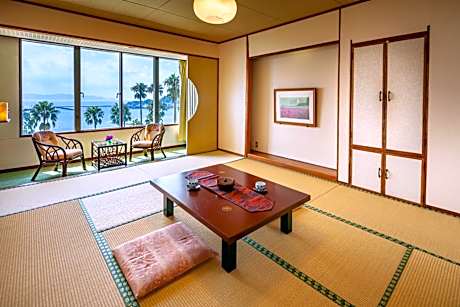 Providing free toiletries, this family room includes a private bathroom with a bath, a shower and a bidet. The family room's kitchen, which features a refrigerator and an electric kettle, is available for cooking and storing food. The spacious air-conditioned family room provides a flat-screen TV, tatami, a dining area, a safe deposit box as well as sea views. The unit offers 6 futons.