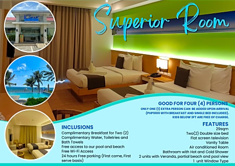 Great care is taken to ensure guests experience comfort through top-notch services and amenities.Remain linked during your visit by utilizing the complimentary internet access available. Prior to your check-in date, you can arrange airport transportation services, guaranteeing a seamless and efficient experience for both arrival and departure. Experience the wonders of Subic (Zambales) with ease by utilizing the services provided at taxi. The hotel offers complimentary parking for guests who arrive with their own mode of transport.Effortlessly plan your daily activities and travel requirements with concierge service, express check-in or check-out, luggage storage and safety deposit boxes provided by the front desk services.During leisurely days and evenings, in-room amenities such as room service and daily housekeeping enable you to maximize your stay in the room. For minor or impromptu requirements, the convenience stores can promptly cater to them without the necessity of stepping out from the hotel. The hotel is completely smoke-free.In limited designated zones, smoking is exclusively permitted.Crafted for coziness, every guestroom provides an array of features, guaranteeing a tranquil night's sleep while maintaining the level of comfort. For a more enjoyable stay, select rooms at hotel are equipped with blackout curtains and air conditioning.At iCove Beach Hotel, a selection of rooms can be found that showcase unique design elements such as a balcony or terrace. For certain chosen rooms, guests can enjoy in-room amusement like television and cable TV as a part of their stay.Rest assured that your hydration needs will be met, as some guestrooms are equipped with a refrigerator and bottled water.Maintain your cleanliness and feel revitalized using toiletries available in select guest restrooms. Begin your day on a delightful note with a scrumptious complimentary breakfast, consistently served at iCove Beach Hotel. Begin your holiday mornings right with your essential cup of coffee, offered daily at the cafe on-site.During your visit, indulge in a range of delightful culinary choices at hotel to enhance your experience.Experience a fantastic evening effortlessly! Relish an entertaining night without venturing beyond the confines of the bar. ICove Beach Hotel provides a superb assortment of leisure amenities for guests to enjoy. During your stay, the hotel provides direct access to a beach, ensuring you remain near the sea throughout your visit. Treat and spoil yourself by taking a trip to massage.Begin your holiday perfectly by taking a plunge into the swimming pool.At the hotel, enjoy a laid-back beverage experience by the poolside bar, sipping on a soothing cocktail.