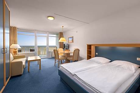 This 3-star hotel is located on the beach promenade at Burg, on the Baltic island of Fehmarn. The IFA Fehmarn offers 2 restaurants and a bistro. All rooms and apartments at the IFA Fehmarn Hotel & Ferien-Centrum are brightly decorated. All rooms include satellite TV and a fully furnished kitchenette, while some have a balcony with Baltic Sea views. Guests staying in the one-room apartment Vitamar are welcome to relax in the spa area with swimming pool. All guests receive free entrance for the public swimming pool Fehmare. Sports activities include tennis, mini golf and fishing. A buffet breakfast and a selection of regional Schleswig-Holstein specialties are served in the elegant Windrose restaurant, which features Baltic Sea views.The Fischerkate bar and lounge features traditional maritime furnishings. Guests are also welcome to enjoy steaks and pizzas in the informal Strandpizzeria, or snacks in the Marché bistro. All guests of our house have free admission to the swimming pool "FehMare" next door for 2 hours every day. If you have booked an apartment in the house "Vitamar", you can also relax in the in-house pool and sauna. Sports such as tennis, golf and fishing are possible nearby.