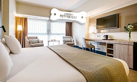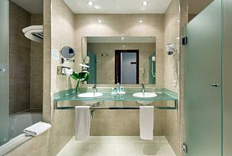 Set in a contemporary eco-efficient building within the port area and overlooking the sea, Ilunion Málaga offers an on-site restaurant, wellness area with indoor pool, and a fitness center. Maria Zambrano Train Station is just 5 minutes' walk away. Featuring wooden floors and decorated in warm colors, the spacious rooms at Ilunion Malaga have air conditioning and free WiFi. They include a 32-inch flat-screen satellite TV and a free safe. The private bathroom is equipped with a hairdryer and free toiletries. Many rooms also offer sea views and some have a private terrace. Daily breakfast is served in the restaurant, while an à la carte menu is available at lunch and dinner. Room service can be ordered from the bar-cafeteria during the day. They all include special products for celiac and food intolerant guests. The wellness area includes a sauna, sensation showers and heated loungers. Beauty treatments are available. There is also an indoor swimming pool, which during the summer months is turned into an outdoor pool. The Picasso Museum is a 20-minute walk from Ilunion Málaga, while Malaga Historic Center is just 10 minutes away. Private underground parking is available at extra cost. The nearby Maria Zambrano Train Station is 1640 feet from the hotel, offering direct connection to Malaga Airport and the rest of the Costa del Sol. Málaga Airport is 5.6 mi away. Pets are allowed. A supplement of 25 EUR per pet per night applies. Please confirm that this is a pet-friendly reservation and call the hotel to check availability and ensure that the room is fully stocked. Pets are only allowed in the pet-friendly double room. Pets are not allowed in the other rooms. Upon arrival at the property, guests will be provided with access rules, which they must read and accept. License Number(s): H/MA/01777