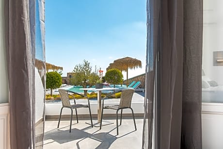 Situated 1 km from the well-preserved medieval village of Pyrgos, the newly built IMPRESSIVE ONE is offering elegantly decorated accommodation and warm hospitality, for a truly relaxing holiday experience on the island of Santorini. Created with love and taste, our hotel is a charming Cycladic complex with 15 rooms and suites that reflect the spirit of the island. Tasteful furnishings, clean design, soft colours and a touch of tradition offer visitors a wonderful scenery for their holiday in Santorini. The hotel's location, 5 km from the lively Fira capital, is a beautiful and strategic starting point to discover the history, the attractions as well as the beaches of Santorini. At the same time guests have the opportunity to sit back beside the swimming pool and enjoy the island's atmosphere around them.