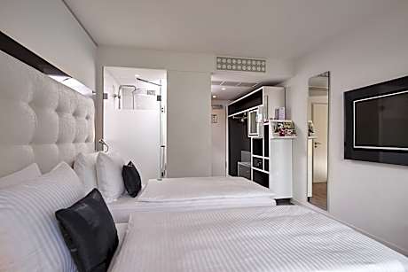 The stylish guest room with its open design with timeless elegance features either a large double bed or a single bed. It also comes with a LED TV and a safe. Free WiFi is also included.The bathroom features a rain shower.