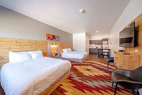 Il Kanab Suites offre sistemazioni a Kanab. Dispone di una terrazza solarium e offre gratuitamente la connessione WiFi e un parcheggio privato. Le camere sono dotate di aria condizionata, TV a schermo piatto con canali satellitari, frigorifero, macchina da caffè, doccia, set di cortesia e scrivania. Ogni camera dispone di bagno privato con asciugacapelli, mentre alcune regalano una vista sulla città. Le camere sono dotate di forno a microonde. L'aeroporto municipale di Page dista 119 km.
