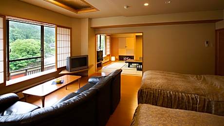 8.9 miles from Shinjō Station in Mogami, Kansyokan offers accommodations with access to a public bath and open-air bath. Each accommodation at the 4-star ryokan has mountain views, and guests can enjoy access to a hot spring bath and a spa center. The ryokan features rooms with air conditioning, free private parking, and free Wifi. Rooms are fitted with a kettle, a flat-screen TV, and a safety deposit box, while selected rooms also feature a terrace and some have river views. At the ryokan, all units are allergy-free. Buffet and Asian breakfast options with warm dishes, local specialities, and fruit are available. There is a coffee shop and bar. The ryokan is located in a geothermal area, with a number of hot springs for guests to relax in. In addition to a seasonal outdoor pool, the ryokan also provides kids pool. Oishida Station is 18 miles from Kansyokan, while Murayama Station is 26 miles from the property. Yamagata Airport is 30 miles away.