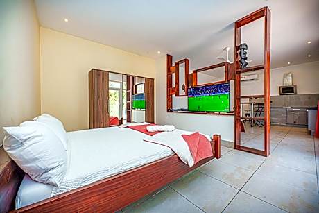 Located in Bijilo, a 1-minute walk from Bijilo Beach, Kasumai Beach Resort provides accommodations with an outdoor swimming pool, free private parking, a garden and a private beach area. Among the various facilities are a terrace, a restaurant, as well as a bar. The property has a 24-hour front desk, airport transportation, room service and free WiFi throughout the property. The resort will provide guests with air-conditioned rooms with a desk, an electric tea pot, a fridge, a safety deposit box, a flat-screen TV and a private bathroom with a shower. All guest rooms feature a closet. A buffet, à la carte or continental breakfast is available at the property. Bijolo Forest Reserve is 0.9 miles from Kasumai Beach Resort, while Abuko Nature Reserve is 9.3 miles away. Banjul International Airport is 7.5 miles from the property.
