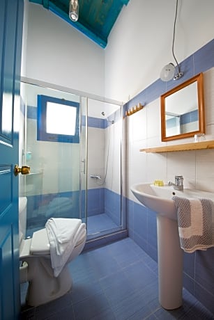 The Kerame Hotel, named after its surrounding area, is situated 1 km from Evdilos port. Built amphitheatrically above Kerame beach, it offers breathtaking views of both mountains and sea. Decorated in traditional island colors of blue and white, the hotel offers 11 studios, 21 apartments, five suites, three villas, and five economical half-story rooms, accommodating up to 157 guests. All rooms feature a fully equipped kitchenette, air conditioning, television, hair dryer, telephone, and a private balcony or veranda.