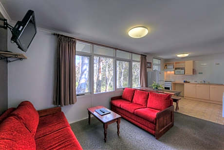 Offering garden views, Kosciusko Tourist Park in Jindabyne features accommodations, a garden, and a shared lounge. Featuring free private parking, the 4-star resort village is 19 miles from Snowy Mountains. When staying at the resort village, guests can use private entrance. All units comprise a seating area and a fully equipped kitchen with various cooking facilities, including a microwave, a toaster, a fridge, and a stovetop. A balcony with an outdoor dining area and quiet street views is offered in some units. The rooms are equipped with heating facilities. Guests can also warm up near the outdoor fireplace after a day of skiing. Perisher is 10 miles from Kosciusko Tourist Park, while Lake Jindabyne is 15 miles from the property.