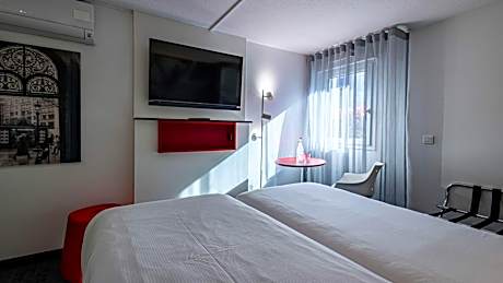 Located 2133 feet from the center of Hôtel Gustave Colmar in the heart of Alsace, this hotel offers free WiFi access and a lounge area. The Exhibition Park is just 0.6 mi away. With flat-screen TVs, satellite channels, all spacious rooms at Gustave Colmar feature a modern decor and a welcome tray. All private bathrooms are equipped with hairdryers. Every morning a buffet-style breakfast is served and meal trays can be requested. On-site parking is free of charge subject to availability and the Colmar Train Station is 1.2 mi away. Strasbourg is a 1-hour drive away and the Colmar Airport is 1.9 mi from the hotel. Located just a 10-minute walk from Colmar city center, in the heart of Alsace, the Gustave Colmar hotel offers modern comfort and practical amenities. Its prime location makes it an ideal choice for visitors, just 0.6 mi from the exhibition center. Our spacious, air-conditioned and soundproofed rooms feature contemporary decoration and are equipped with flat-screen televisions and a courtesy tray. The private bathrooms have hairdryers for added convenience. Every morning our guests can enjoy a delicious buffet breakfast. Parking at the hotel is free, subject to availability. For your convenience, the Lacarre public car park, monitored 24 hours a day, located just a 3-minute walk away, allows you to leave your vehicle for only €3 per 24 hours. For those traveling by train, Colmar station is just 1.2 mi away. The hotel is also well connected to other major destinations, with Strasbourg less than an hour's drive away and Colmar Airport 1.9 mi away. Come and enjoy our warm welcome and our quality service for a pleasant stay in Alsace.