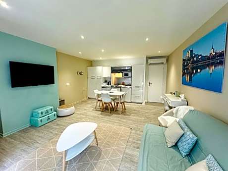 The hotel Kyriad Saumur Hyper Center Hôtel Appartements et SPA soins Sothys Paris is conveniently located in the city center of Saumur on the left bank of the River Loire. It offers elegantly decorated guest rooms complete with free WiFi access. Each of the guest rooms is decorated in an individual color scheme, and they include an LCD TV as well as facilities for making tea and coffee. The private bathrooms include a hairdryer and free toiletries. Start your day with a buffet breakfast served in the dining room, which features exposed beams. Guests driving to the area will appreciate the free parking at 984 ft. Access to the SPA and swimming pool are available at an additional cost.