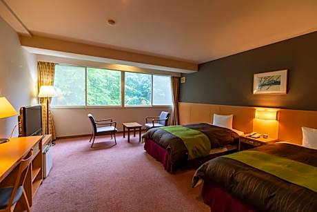 The air-conditioned twin room features a flat-screen TV, a coffee machine, a seating area, a wardrobe as well as garden views. The unit has 2 beds.