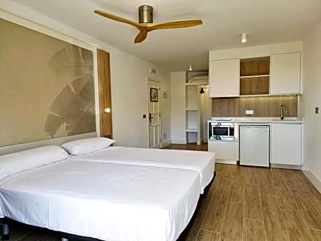 Relax around the outdoor swimming pool as your children play in the year-long sunshine at this friendly apartment complex in the south of Tenerife. The Laguna Park 1 is located just 2297 feet from the popular Playa de las Américas Beach on the island’s Costa Adeje. It is built around a huge swimming pool designed for both adults and children. Here you will also find a poolside snack bar and a terrace with sun loungers – ideal for a day of soaking up the sun. While you relax, children can enjoy themselves at the mini club or by playing table tennis. Then, on most evenings, the whole family can be entertained by the live shows in the lounge bar. The well-equipped apartments all come with a kitchen including a microwave, kettle and toaster.. This allows you to prepare your own meals using products from the on-site supermarket. Alternatively, the family can dine together at the buffet restaurant.