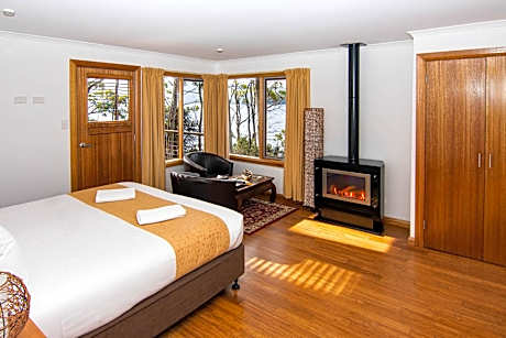 Located within Cradle Mountain – Lake St Clair National Park with views of Cynthia Bay, Lake St Clair Lodge offers a variety of accommodations choices. Guests can interact with local wildlife, including pademelons and Bennett’s wallabies. Each studio, cabin and cottage includes a private bathroom and TV. Some have a kitchenette with microwave, stove and kitchenware; others have a spa bath or fireplace. The Lodge Bar features a fireplace and outdoor balcony area with seating area. Meals are served all day, along with a wide selection of beers, wine and spirits. Lodge Lake St Clair is just a 3-minute drive from Derwent Bridge.