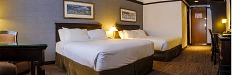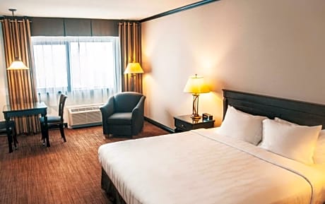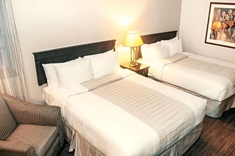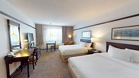 Experience unparalleled comfort and hospitality at Le Montagnais, the largest hotel and conference center in Chicoutimi, Saguenay-Lac-Saint-Jean. Nestled along one of North America's most spectacular fjords, the region boasts stunning natural beauty and sumptuous beaches. Our 307 guest rooms feature two double beds, accommodating up to four guests, and offer plush bedding, inviting armchairs, and elegant decor. Amenities include hairdryers, modem connections, tea and coffee facilities, and cable TV. Indulge in exceptional dining at Le Légendaire Restaurant-Bar, unwind at our bar and nightclub, or rejuvenate at our health center. Enjoy indoor and outdoor pools, exercise equipment, saunas, a whirlpool, tennis and volleyball courts, and a games room.