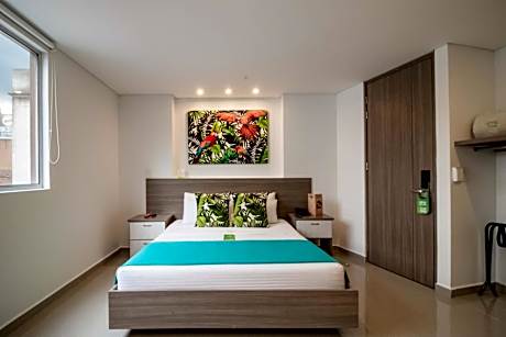 Boasting a terrace and views of the city, Lleras Green Hotel offers modern and comfortable accommodations in Lleras Park, Medellín. Free WiFi access is provided. A daily complimentary breakfast is served. The guestrooms at Lleras Green Hotel feature a minimalist yet elegant decor. They are fitted with air conditioning, a flat-screen cable TV, a safety deposit box and a mini-bar. Bathroom facilities are private and include a shower and a hairdyer. Towels, linens and toiletries are provided. Guests can order room service and shop at the on site store. There is a 24-hour front desk and tourist information can be provided. Airport shuttles and parking services are available for a surcharge. El Poblado Park is 984 feet away. The nearest airport is Olaya Herrera Airport, 1.2 mi from the property. License Number(s): 41695