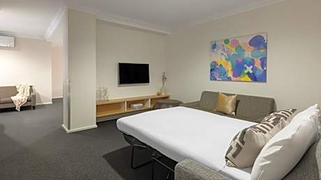 Located in the heart of the city, Oaks Perth Hotel provides the perfect base to explore vibrant Perth. Whether you're visiting for business or leisure, the hotel provides contemporary and stylish suites with plush décor and modern facilities. An site restaurant and bar is featured. Complimentary WiFi is available in the lobby. Oaks Perth Hotel is adjacent to the cities best shopping, restaurants and laneway bars with easy access to the Convention & Exhibition Center, Optus Stadium and all the attractions the city has to offer. The studios and suites all provide guests with air-conditioning, a private bathroom with a bath and shower and a flat-screen TV with cable channels. The kitchenettes include a microwave, fridge and stove top. When booking 4 rooms or more, different policies and additional supplement may apply.
