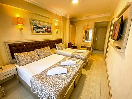 Located in Istanbul, 2 miles from Spice Bazaar, Mekke Hotel Istanbul provides accommodations with a restaurant and private parking. With a shared lounge, the 3-star hotel has air-conditioned rooms with free WiFi, each with a private bathroom. The property has room service, a concierge service and currency exchange for guests. The rooms come with a flat-screen TV with satellite channels, minibar, an electric tea pot, a shower, free toiletries and a desk. All guest rooms have a closet. A buffet breakfast is available at the hotel. Round-the-clock assistance is available at the reception, where staff speak Arabic, Bulgarian, Greek and English. Suleymaniye Mosque is 2.2 miles from Mekke Hotel Istanbul, while Galata Tower is 2.5 miles away. Istanbul Sabiha Gokcen International Airport is 23 miles from the property, and the property offers a paid airport shuttle service. License Number(s): 2022-34-0391