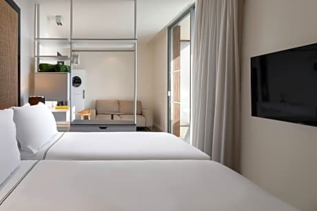 Featuring floor-to-ceiling windows, this spacious and air-conditioned room has a private furnished terrace with views of the mountains in Calvia. It has a Minimalist design and comes with a sofa, in-room bar and a private bathroom with rain shower.