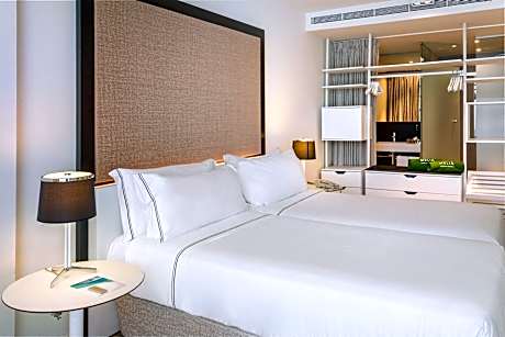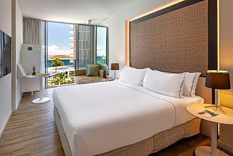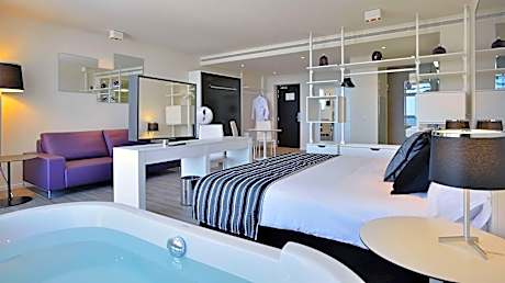Set on the beachfront at Calvia Beach, Meliá South Beach features 4 seasonal outdoor pools and stylish rooms with free WiFi. The hotel offers an a la càrte restaurant,The Cape Nao Beach Club. Each spacious room at Meliá South Beach has bright, contemporary décor. There is air conditioning, a flat-screen TV and a mini-bar. The private bathroom includes free organic toiletries, plus bathrobe and slippers. Meliá South Beach's poolside bar offers Spanish tapas, fresh seafood and other light dishes. Restaurants, bars and cafés can also be found by the seafront. It is located next to Nikki Beach Club & Restaurant, The hotel Yhi Spa features unique beauty treatments and massage services and a fitness room. Free yoga and pilates classes are also included. One of the pools is adults-only, where you can find Balinese beds to relax on, another one is only for the level guests and the other pool is for children. Room service is available 24 hours. The center of Palma is 9.3 mi from the Meliá South Beach, while the city’s airport can be reached in 20 minutes by car. The hotel also offers a private jet service. You can drive to both Puerto Portals and Puerto Adriano within 15 minutes.