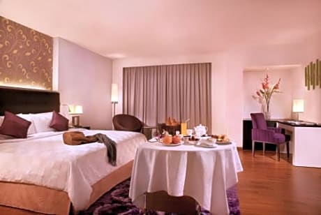 A modern room with double bedding and city views. A flat-screen TV, mini-bar and tea/coffee-making facilities are provided.