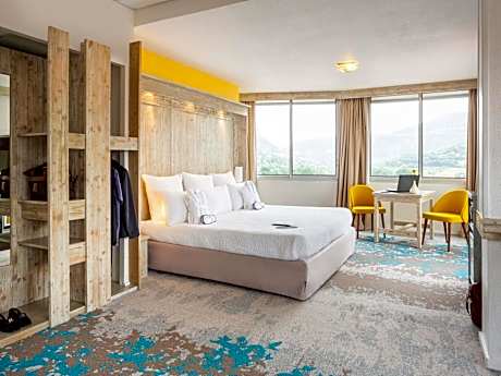 This Mercure hotel is located in Millau in the Midi-Pyrenees, just 550 yards from the historic Place Foch. It offers views of the Millau Viaduct and has an outdoor terrace. Each guest room includes air conditioning, satellite TV and wired internet access. Many rooms have views of the Causses limestone plateaux or Millau Viaduct. The Mercure Millau’s restaurant, Au Bouchon de la Fontaine, is open for lunch and dinner serving traditional French cuisine. A wide selection of fine wines is available in the hotel bar. In addition to a 24-hour front desk, Hotel Millau also provides dry cleaning and tour desk services. Cevennes National Park is 12 miles away and the Millau Viaduct is a 5-minute drive from the hotel. Private on-site parking is available.