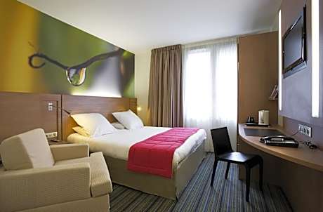 Located in the heart of Quimper, the Mercure Quimper is opposite the train station and just 2625 feet from the Saint-Corentin Cathedral. Recently renovated, this hotel features a 1640 ft² terrace and a relaxing bar. Many of Quimper’s museums and tourist attractions such as the medieval fortifications can be reached on foot. Daytrips are facilitated by the Mercure Quimper’s excellent public transport links; the bus and train station are just in front of the hotel. Popular tourist towns including Concarneau and Pont-Aven are within easy reach. A trip to the Brittany’s beautiful coast is also a must.