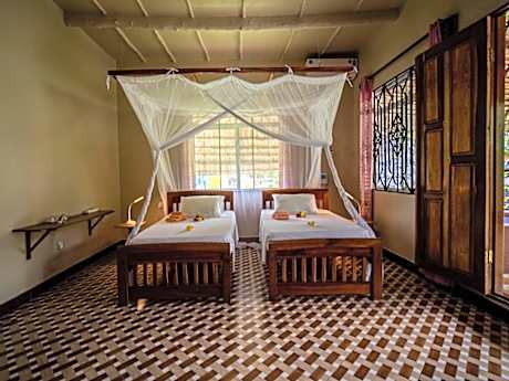 Experience an abundance of unparalleled facilities and features at MEREMETA LODGE MAFIA ISLAND.Maintain seamless communication using the complimentary Wi-Fi at lodge.Guests can avail parking facilities at the lodge. During leisurely days and evenings, on-site amenities such as daily housekeeping enable you to fully enjoy your accommodation.At MEREMETA LODGE MAFIA ISLAND, every guestroom is provided with convenient amenities and fittings to ensure a comfortable stay.Enhance your experience at lodge with the knowledge that certain rooms are equipped with linen service, blackout curtains and air conditioning for your convenience. A few accommodations within MEREMETA LODGE MAFIA ISLAND offer unique design elements such as a balcony or terrace. In select rooms within the lodge, a refrigerator, bottled water, a coffee or tea maker, instant coffee, instant tea and mini bar is available to cater to your requirements when desired. Essential restroom facilities are equally significant, and at the lodge, some visitor bathrooms offer a hair dryer to enhance your experience. Begin your day carefree at MEREMETA LODGE MAFIA ISLAND, as complimentary breakfast is offered for your convenience. At the lodge, discerning guests can also enjoy on-site culinary facilities like shared kitchen tailored to their preferences.