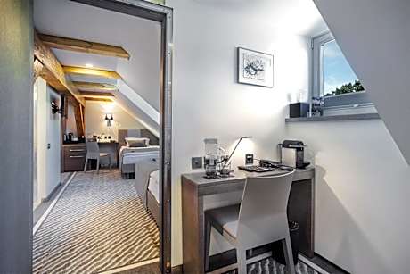 This twin/double room is overlooking the castle and feature preserved authentic original wooden structures. Room has a private bathroom and extra-long beds. It also offers Nespresso coffee machine and a mini-bar.